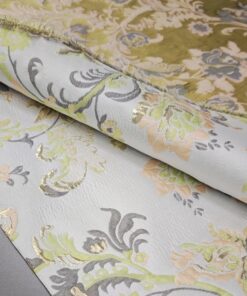 🌟 Kraljevski obostrani žakard sa zlatnom lurex niti – pistacija zelena & puder siva – barokni uzorak