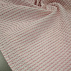 Ovaj prirodni pamučni uzorak s točkicama i nježnom ružičastom strukturom saća osvaja svojom prirodnom elegancijom i ugodnim osjećajem na dodir. Izrađen od čistog pamuka, mekan je, prozračan i izdržljiv, što ga čini savršenim za šivanje dječjih proizvoda, posteljine, odjeće ili ukrasnih dodataka za dom. Odsjaj saća u nježnom ružičastom tonu daje tkanini profinjen izgled koji prekrasno sjaji na svjetlu, dok blaga tekstura točkica osigurava lijep hvat i stabilnost pri šivanju.