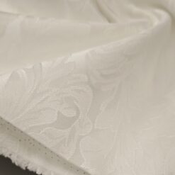Ovaj vrhunski bijeli damast savršen je izbor za one koji cijene bezvremensku eleganciju i kvalitetu. Širinom od 3 metra omogućuje bešavno šivanje, što ga čini savršenim za luksuzne stolnjake, hotelsku posteljinu, podmetače ili ukrasne navlake.