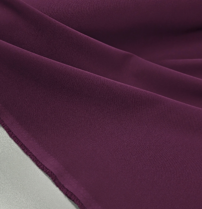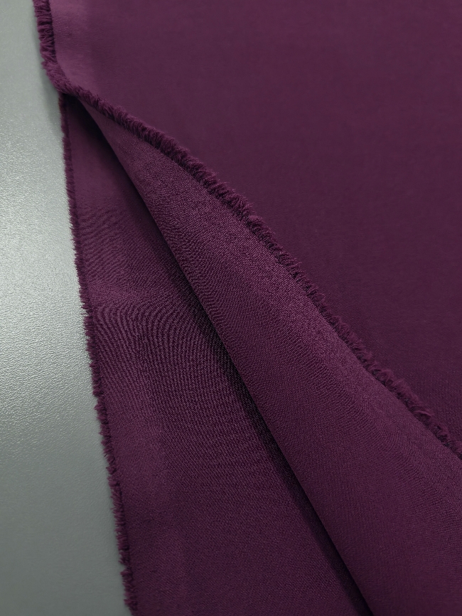 Ljubičasta tkanina za kostime izrađena je od poliestera svilenkastog osjećaja, što joj daje elegantan i sofisticiran izgled. Elastična je u oba smjera, što je čini udobnom za nošenje i lakšim za oblikovanje odjeće. Sa svojom težinom od 230 g/m², pogodna je za izradu kostima, haljina, jakni i druge svečane i elegantne odjeće. Ova visokokvalitetna tkanina nudi izvrsnu stabilnost, a istovremeno održava ugodan osjećaj na koži.
