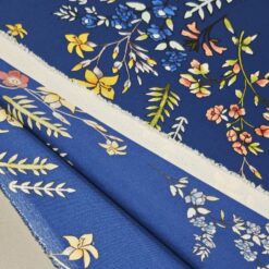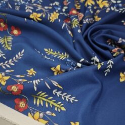 Luksuzan izgled, nježna mekoća i elegantan sjaj – ovaj kraljevsko plavi saten s cvjetnim motivom pravi je izbor za modne projekte gdje želite lakoću i sofisticiran izgled.