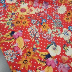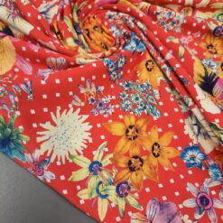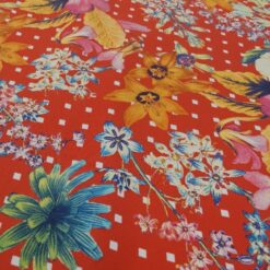 “Crveni cvjetni vrt” – elastična likra s luksuznim cvjetnim motivom