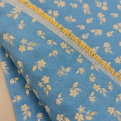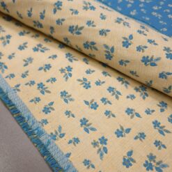 Tkanina kombinira nostalgični šarm i modernu sofisticiranost – sitni cvjetni uzorak u vintage plavoj boji dočarava toplinu, nježnost i bezvremensku eleganciju. Mogućnost dvostranog tkanja omogućuje dodatnu kreativnost u korištenju, jer je uzorak prisutan s obje strane.