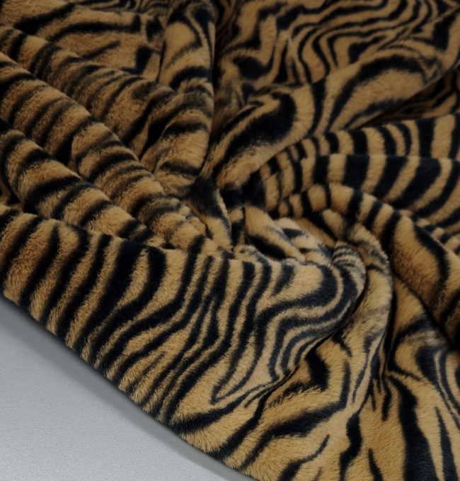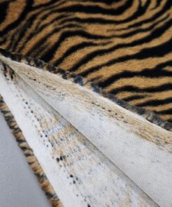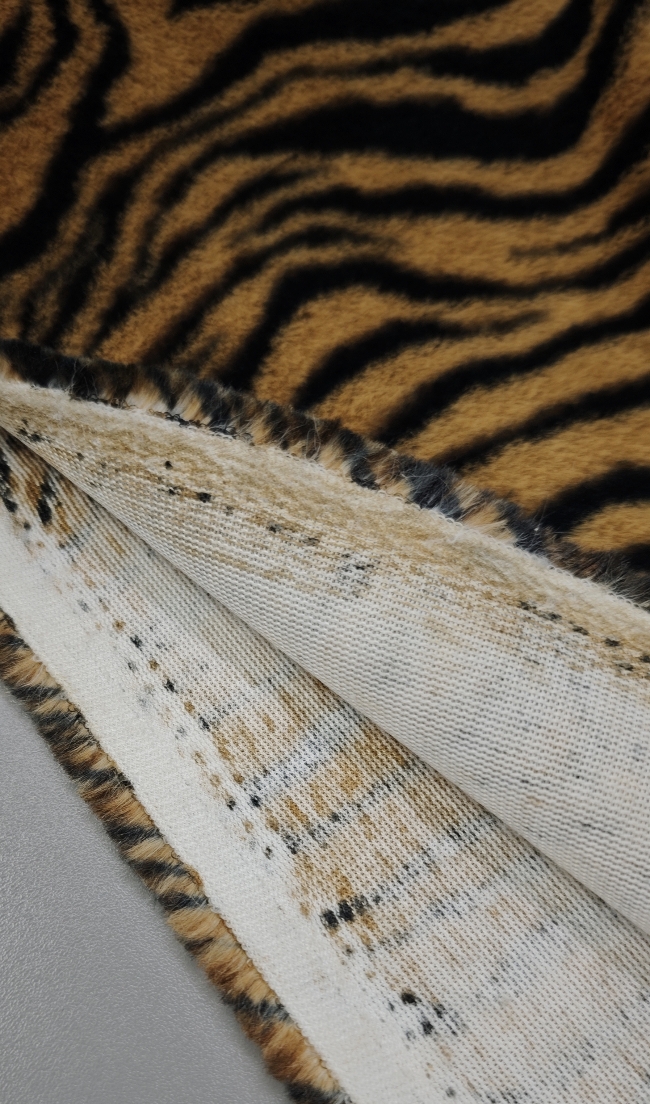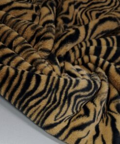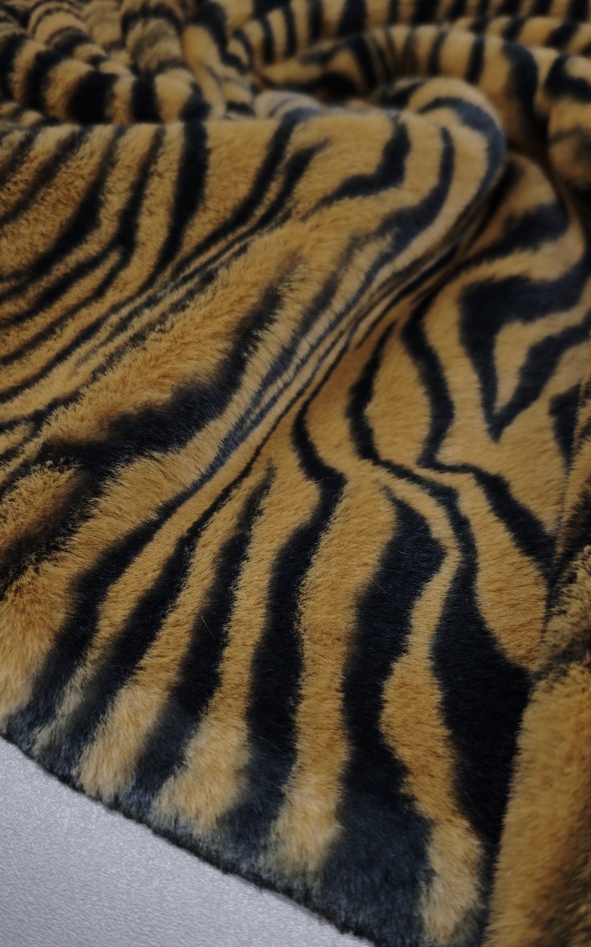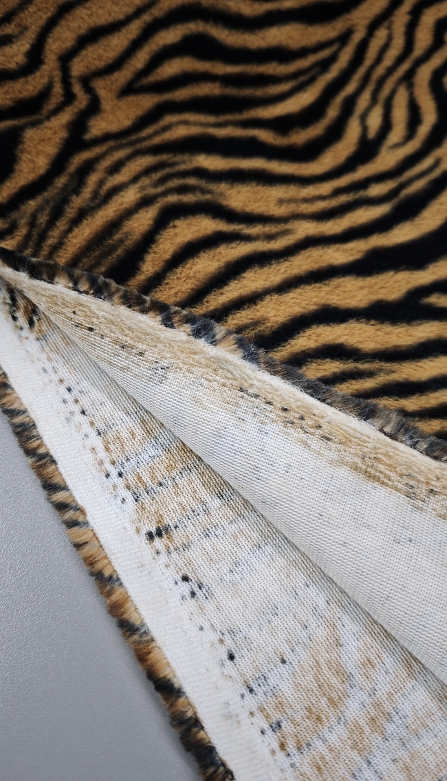 Tigrovo umjetno krzno u smeđe-crnom životinjskom uzorku donosi izražajan, luksuzan izgled s jasnim vizualnim identitetom. Gusta i mekana struktura vjerno imitira pravo krzno, dok kontrastne smeđe i crne pruge stvaraju efekt koji odmah privlači pažnju.