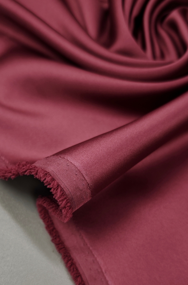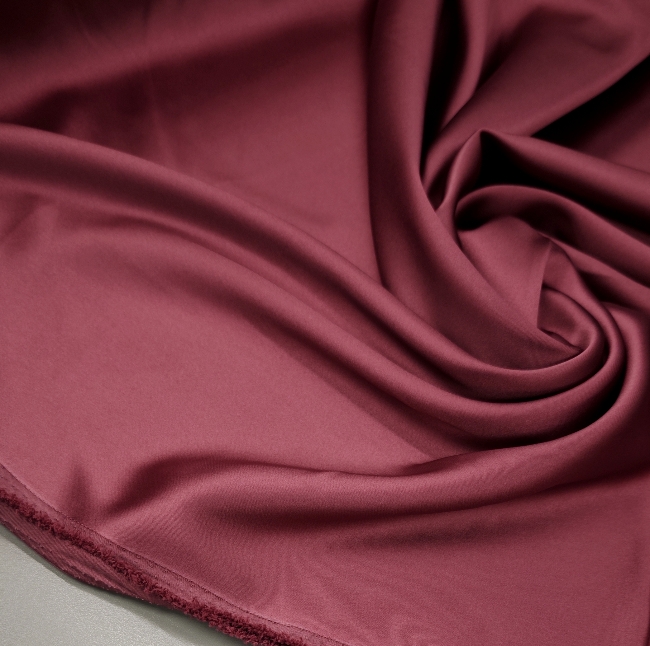 Ovaj američki teži elastični saten u dubokoj bordo crvenoj boji odmah stvara dojam luksuza. Mek, gladak i sjajan, savršeno prati liniju tijela i daje odjeći elegantan, skupocjen izgled.