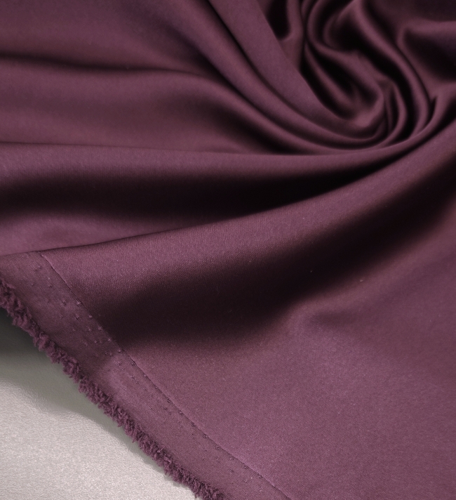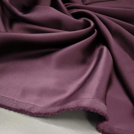 Ova visokokvalitetna saten tkanina oduševljava svojom raskošnom bojom šljive i predivnim sjajem koji odmah privlači pogled. Zahvaljujući elastičnosti, savršeno se prilagođava tijelu i pruža udobnost uz elegantan pad. Idealna je za šivanje večernjih haljina, suknji, bluzâ, elegantnih hlača ili modnih detalja.