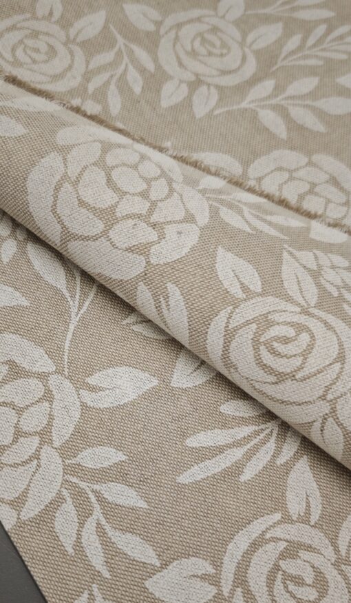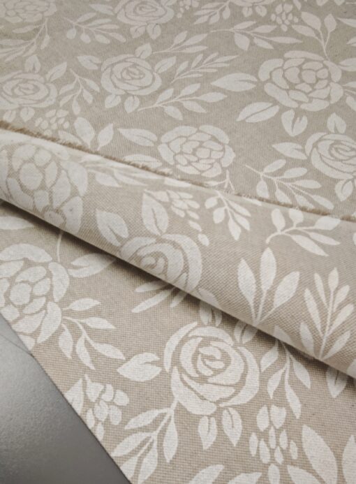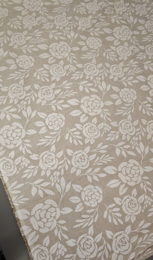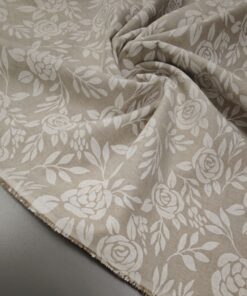 Unesi dašak topline i prirodne elegancije u svoj dom s ovom prekrasnom dekorativnom tkaninom od čistog pamuka. Bež podloga s nježnim bijelim ružama stvara klasičan, ali svjež izgled koji se lako uklapa u svaki interijer.