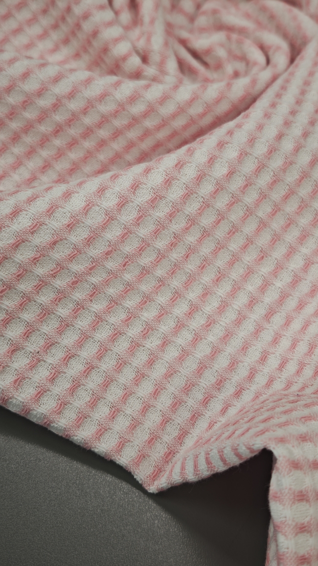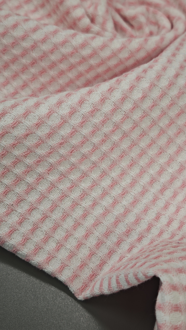 Ova prekrasna tkanina od čistog pamuka kombinira prirodan natur ton s nježno roza satastom površinom koja mu daje diskretan sjaj i osjećaj profinjenosti. Piké struktura osigurava izvrsnu prozračnost i udobnost, zbog čega je idealan izbor za izradu košulja, bluza, haljina, pidžama, posteljine ili laganih dekorativnih dodataka.
