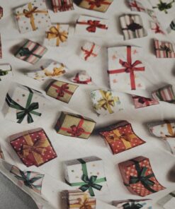 🎁 Svečani božićni popelin – poklončići na natur bijeloj podlozi