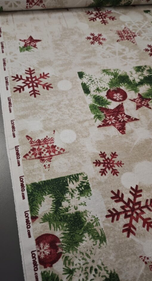 🎄 BOŽIĆNI DEKOR (širina 2,80 m, 200 g/m²) – prekrasna dekorativna tkanina s božićnim motivima, idealna za izradu stolnjaka, jastučića, zavjesa i blagdanskih ukrasa.