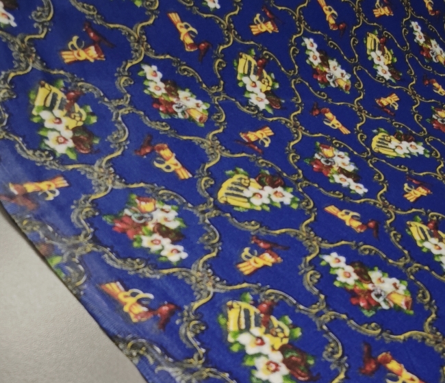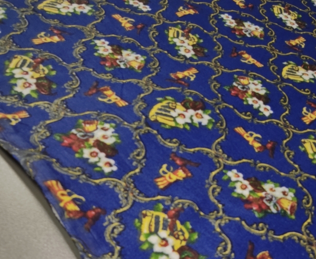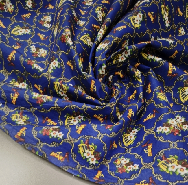 🎄 Božićni popelin – kraljevsko plavi sa zlatno-božićnim motivima
