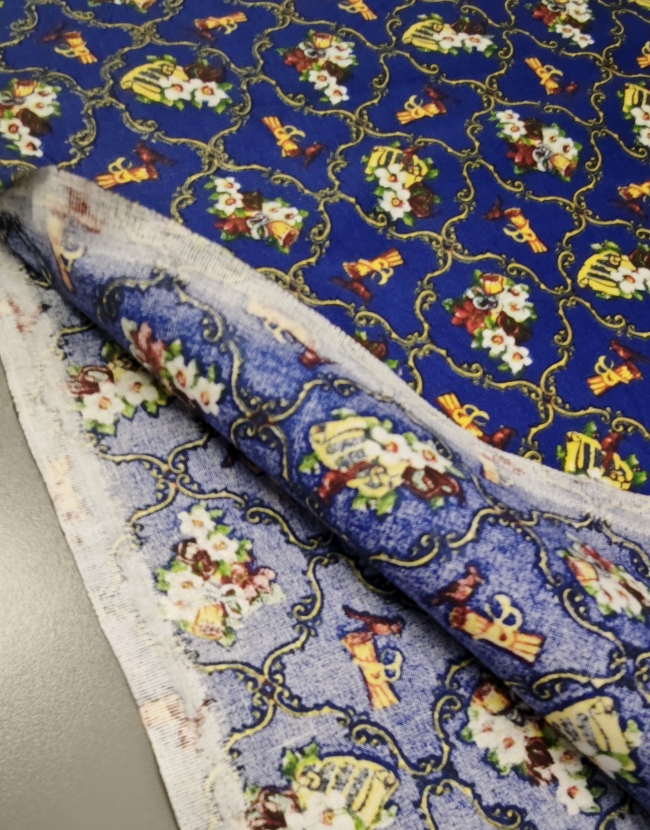 Ovaj božićni popelin u kraljevsko plavoj boji sa zlatno-božićnim motivima donosi topao, svečan izgled koji odmah stvara blagdanski ugođaj. Idealan je za košulje, bluze, dekoracije za dom, navlake, stolnjake i druge blagdanske projekte koji traže uredan, čist i elegantan izgled.