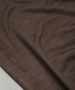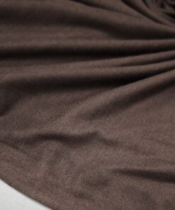Tamno smeđi viskozni jersey – mekan, rastezljiv i lijepo padajući materijal koji oduševljava svojom udobnošću i elegancijom. Idealan je za šivanje odjeće koja se nosi s lakoćom – majica, haljina, suknji, tunika ili laganih hlača.