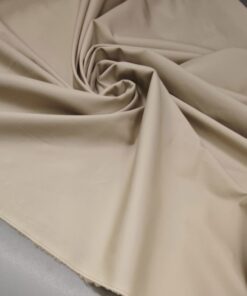 Bež tanji elastični pamučni poplin donosi savršenu ravnotežu između udobnosti i elegancije. Zahvaljujući elastičnosti, pruža slobodu pokreta i udobno nošenje, dok prirodni pamuk omogućuje prozračnost i mekoću na koži. Ova tkanina je idealna za šivanje košulja, bluza, haljina ili laganih hlača koje će izgledati moderno i istovremeno biti praktične za svaki dan. Neutralna bež boja lako se kombinira s drugim tonovima, što je čini odličnim izborom i za casual i za elegantne odjevne komade.