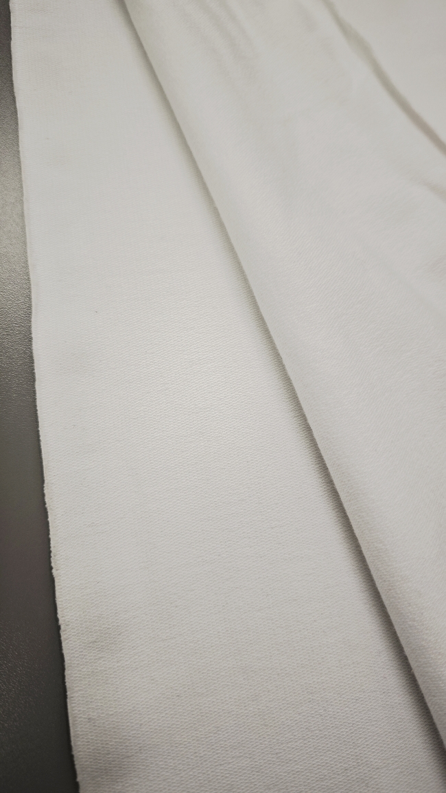 Ova bijela felpa tkanina savršena je za udobne i moderne komade odjeće. Glatka izvana, a meka i topla iznutra, pruža osjećaj ugode pri nošenju kroz cijeli dan. Zbog svoje elastičnosti i ugodne debljine idealna je za izradu trenirki, dukserica, haljina, tajica ili dječje odjeće.