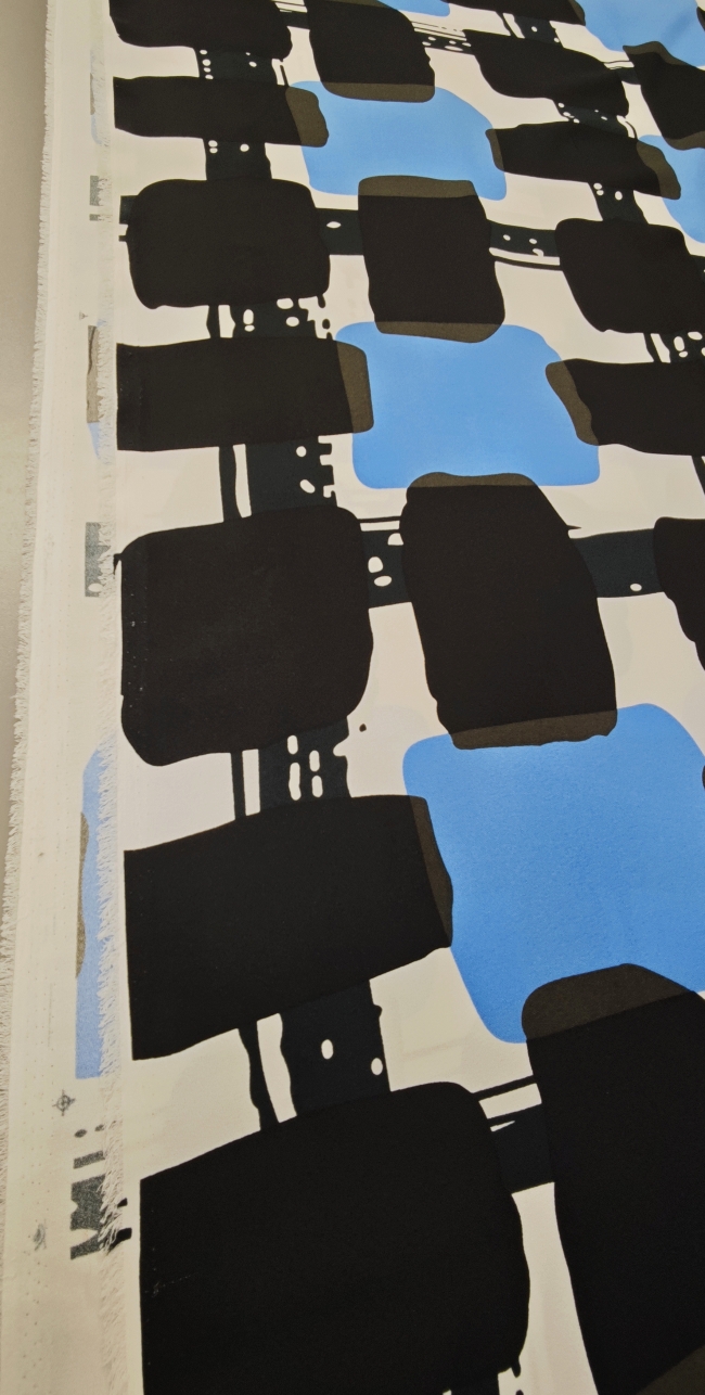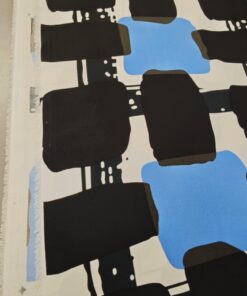 Bilo da želite izraditi svakodnevni komad odjeće ili poseban modni detalj koji plijeni pažnju, ova tkanina pruža savršenu ravnotežu između elegancije i praktičnosti. Geometrijski motivi daju joj moderan izgled, dok kontrast plave i crne boje stvara dojam samouvjerenosti i stila.