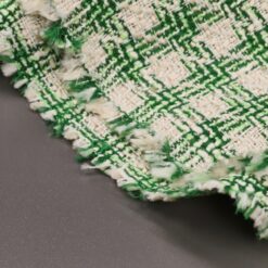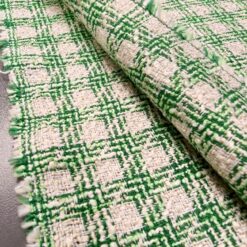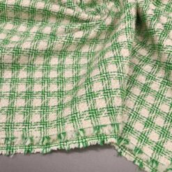 Bijelo-zeleni bukle gustoće 280 g/m2 ima karakterističnu teksturu i idealan je za izradu elegantnih odjevnih predmeta poput kaputa, jakni ili modnih dodataka. Dizajniran za sofisticiran izgled, ovaj materijal će vašim kreacijama dodati šareni i profinjeni dodir. Cijena ovog posljednjeg komada je za 3,50 m/ 32,50 €