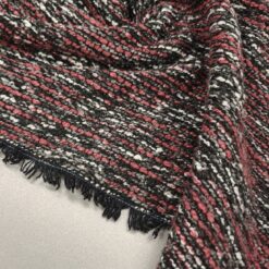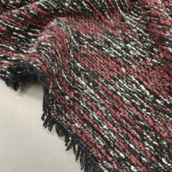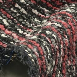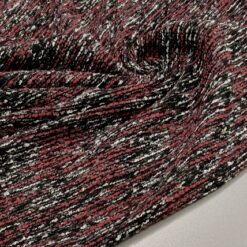 Bordo crveno-siva, bukle tkanina gustoće 385 g/m2 ima karakterističnu teksturu i idealna je za izradu elegantnih odjevnih predmeta poput kaputa, jakni ili modnih dodataka. Dizajniran za sofisticiran izgled, ovaj materijal će vašim kreacijama dodati šareni i elegantan dodir. Cijena 1 kg je 19,90 €.