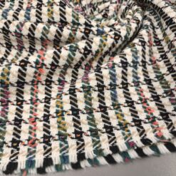 Ovaj višebojni buklé s kariranim uzorkom odličan je izbor za moderne jakne, elegantne sakoe, retro kostime ili kapute s karakterom. Bogata struktura i klasičan izgled pružaju sofisticiran izgled i topao, udoban osjećaj u hladnijim danima.