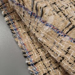 Zlatno-bež, bukle s gustoćom od 290 g/m² ima prepoznatljivu teksturu i idealan je za izradu elegantnih odjevnih predmeta poput kaputa, jakni ili modnih dodataka. Dizajniran za sofisticiran izgled, ovaj materijal će vašim kreacijama dodati šareni i profinjen dodir.