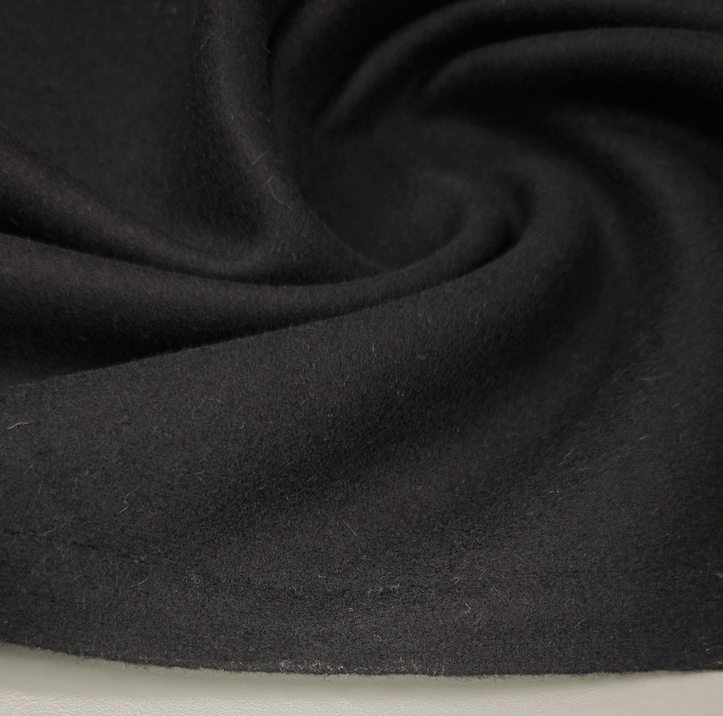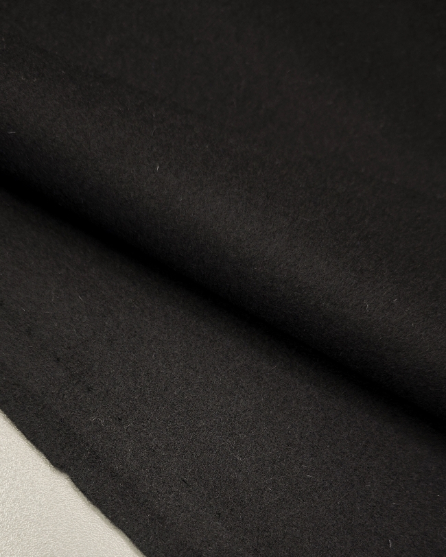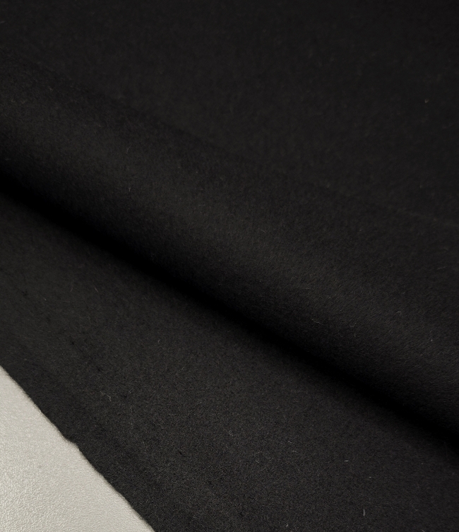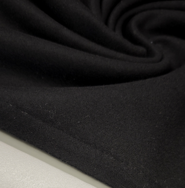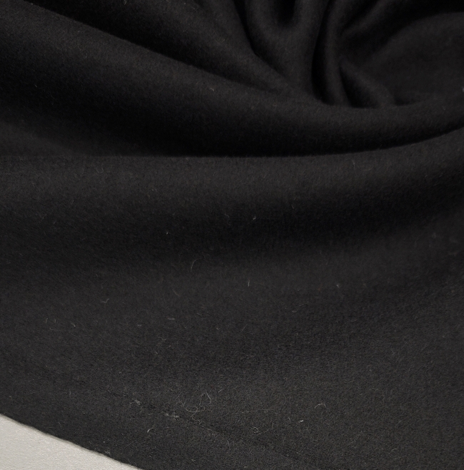 Crna vunena tkanina za kapute – gusta, blago elastična i topla (550 g/m²)