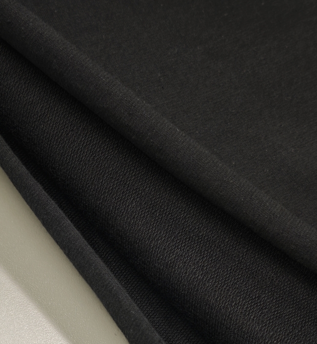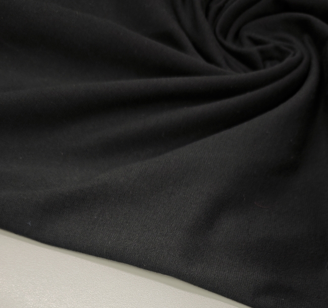 Ovaj kvalitetni crni jersey izrađen od pamuka s dodatkom elastana pruža savršenu kombinaciju udobnosti i rastezljivosti. Mekan je na dodir, lijepo pada i prilagođava se pokretima tijela, što ga čini idealnim izborom za izradu majica, haljina, tajica, tunika i sportske odjeće.