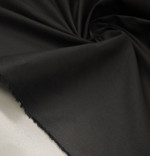 Ovo crno pamučno platno s blagom elastičnošću idealan je izbor za sve koji traže udobnu, prozračnu i prilagodljivu tkaninu. Zahvaljujući prirodnom pamuku i laganoj rastezljivosti, pruža ugodan osjećaj na koži i lakoću pri šivanju.