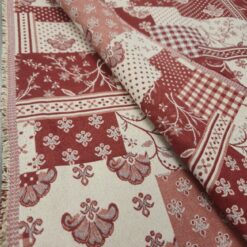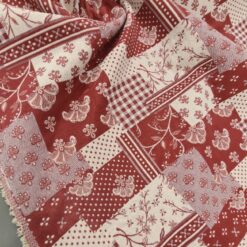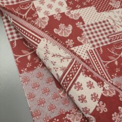 🌺 Crveno-bež šarm sela – dvostrana patchwork dekorativna tkanina (širina 2,80 m, 290 g/m²)