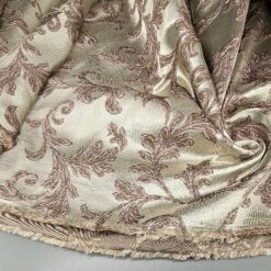 Deco žakard u zlatno-ružičastoj kombinaciji (205 g/m², širina 2,80 m) elegantna je i sofisticirana tkanina, idealna za šivanje ukrasa, zavjesa, navlaka za namještaj ili drugih dodataka za interijer. Svojom bogatom shemom boja i luksuznim uzorkom unosi dašak glamura u svaki prostor. Dostupan po cijeni od 17,50 € po metru, ovaj žakard će zasigurno uljepšati vaš dom.