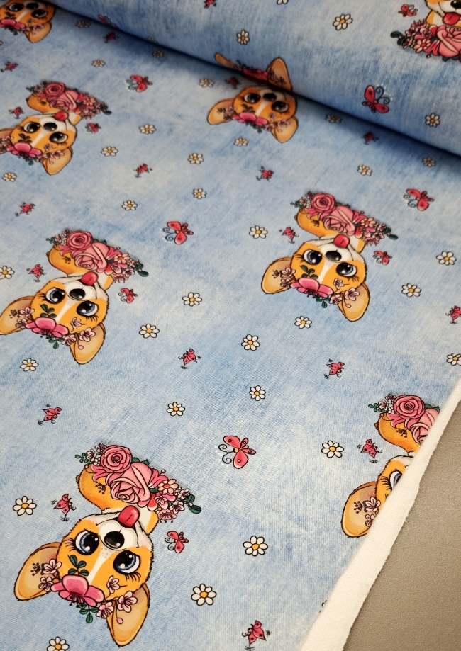 Ova prekrasna dječja felpa u nježnoj plavoj boji donosi vedar, razigran izgled koji djeca obožavaju. Uz simpatične psiće i šarene leptiriće, materijal odmah osvaja svojom toplinom i veseljem – savršen je za udobnu, mekanu i praktičnu dječju odjeću.