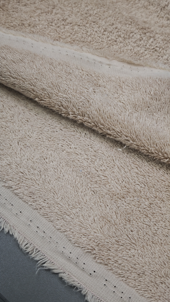 Nježno roza frotir oduševljava svojom mekoćom i prirodnim osjećajem na dodir. Gusta i teška struktura (600 g/m²) pruža iznimnu udobnost i vrhunsku kvalitetu, savršenu za ručnike, ogrtače, dječje tekstile i druge proizvode koji traže maksimalnu upojnost i mekoću.
