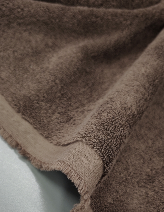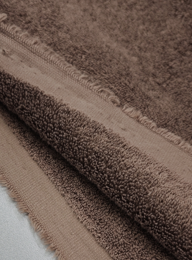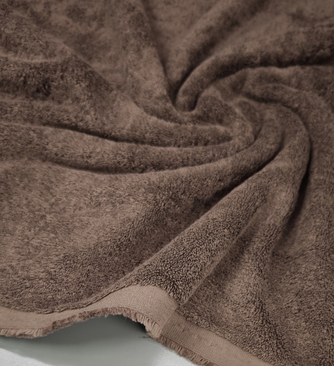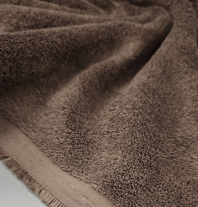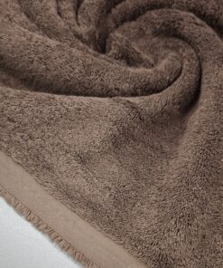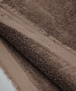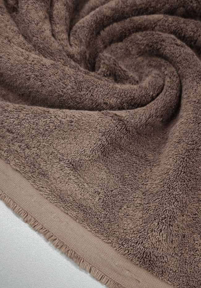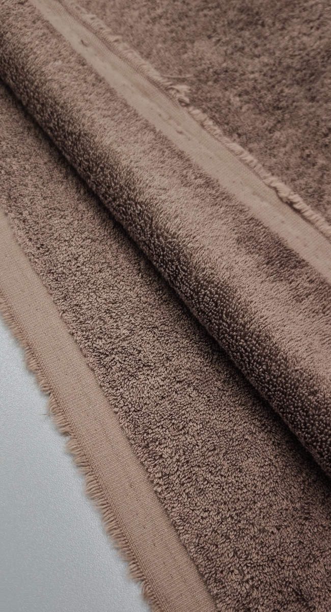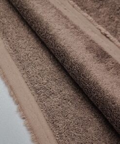 Smeđi frotir – mekan, gust i raskošan materijal koji pruža osjećaj topline i udobnosti na prvi dodir. Sa svojom većom težinom (660 g/m²), ovaj frotir ima iznimnu upojnost i trajnost, što ga čini savršenim izborom za ručnike, ogrtače, kućne haljine, baby opremu ili luksuzne kupaonske tekstile.