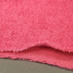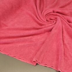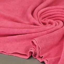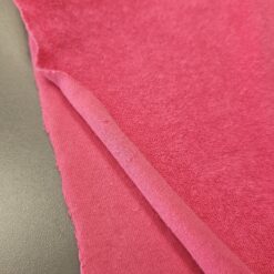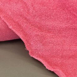 “Ružičasti pamučni jersey s frotirnim izgledom – mekan, elastičan i iznimno udoban materijal koji kombinira toplinu frotira s prozračnošću i fleksibilnošću jerseya. Izvrstan za udobnu odjeću, kućne setove, dječju odjeću i modne dodatke koji će biti i praktični i atraktivni.”
