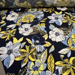 🌟 Noćno cvijeće – cvjetni žersej u tamnoplavoj boji sa žuto-bijelim cvijećem ZADNJI KOMAD 3 m / 19,50 €