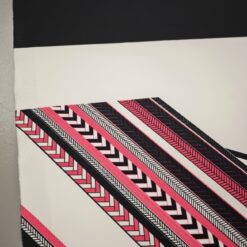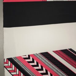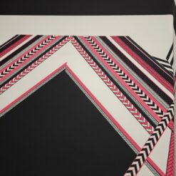 Ova posebna tkanina za ronjenje u dizajnu jerseyja kombinira elastičnost, udobnost i vizualni efekt koji privlači na prvi pogled. Geometrijski uzorak u kontrastnoj crno-bijeloj kombinaciji s izrazitom neonsko ružičastom notom daje tkanini moderan, urbani dodir.