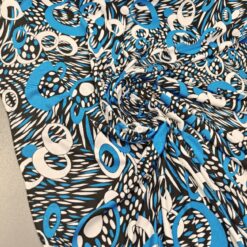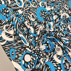 Neka vas vrtlog plavih krugova odvede u svijet udobnosti i stila! Ova rastezljiva likra (160 g/m²) nije samo ugodna na dodir, već i lijepo prati tijelo – idealna za usku odjeću, tajice, kupaće kostime, sportske topove ili modne dodatke.