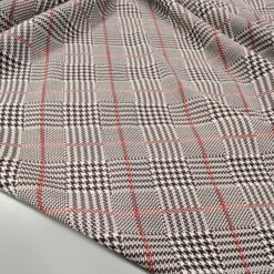 Pepita uzorak s bordo crvenim karo uzorkom – jersey ZADNJI KOMAD 2,40 m / 17,50 €