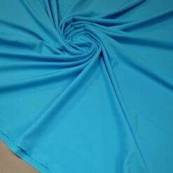 Tanja elastična likra u izrazitoj tirkizno plavoj boji. Materijal je mekan, gladak i vrlo rastezljiv, lijepo prianja uz tijelo i ostaje udoban čak i pri kretanju. Pogodan za laganu odjeću gdje su elastičnost i udobnost važni.