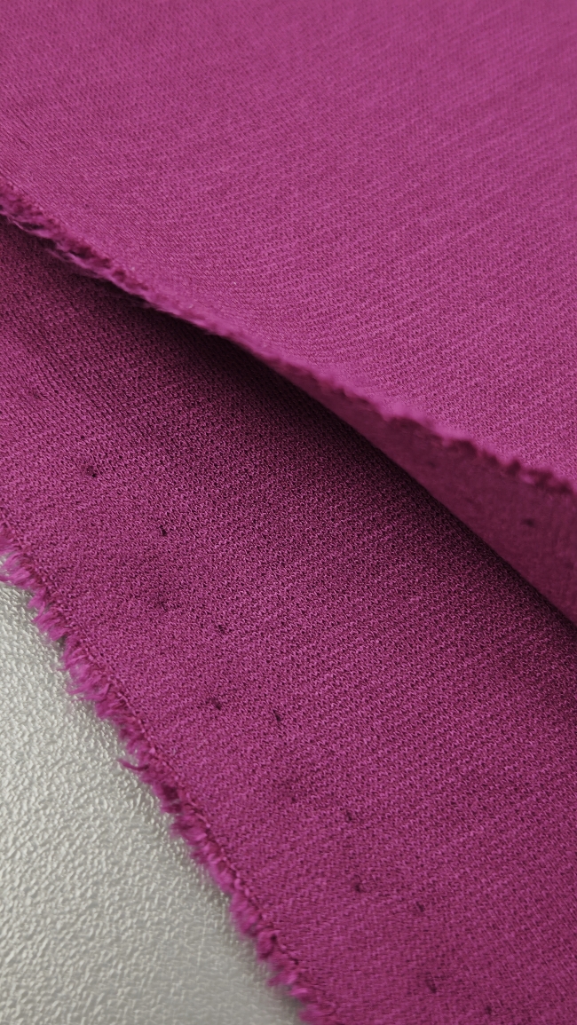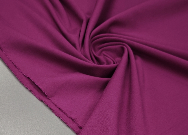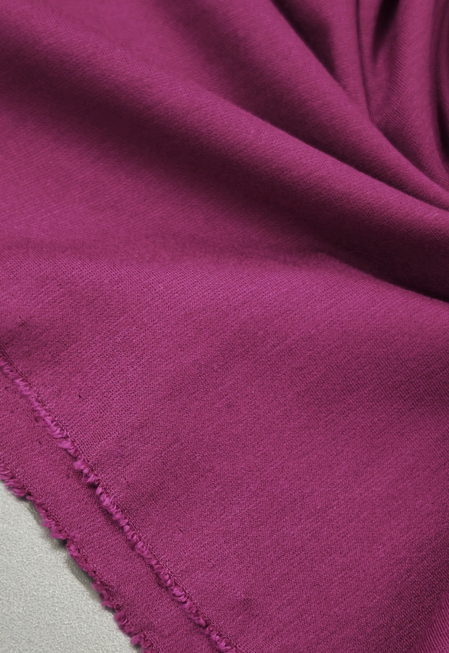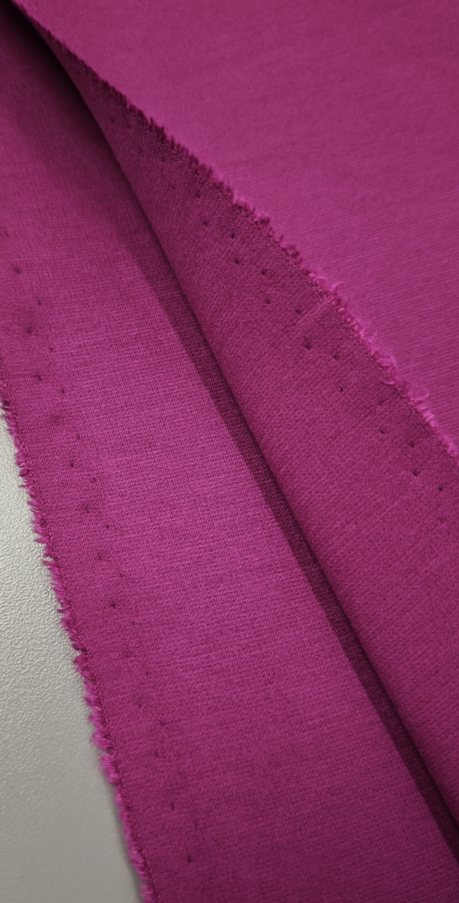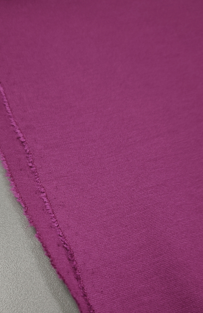 PUNTO MILANO jersey u nijansi ciklame oduševljava svojom kompaktnom strukturom i ugodnom elastičnošću. Ova tkanina srednje debljine odlikuje se glatkom površinom i stabilnim padom, što je čini idealnim izborom za elegantne, ali udobne komade odjeće.
