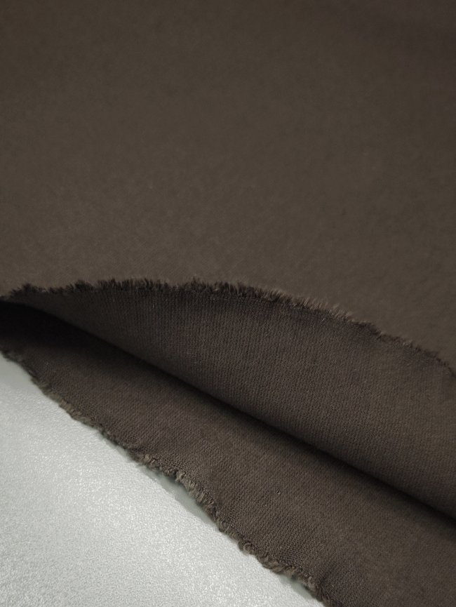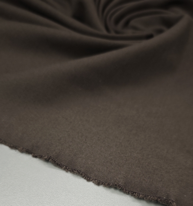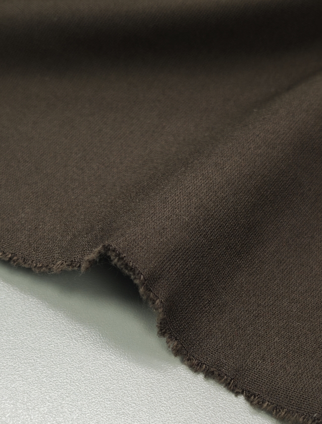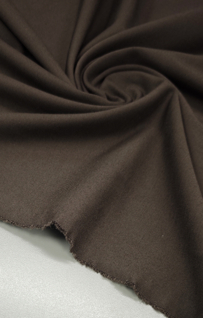 Otkrijte luksuzan Punto Milano u tamno smeđoj boji – gust, kompaktan i profinjeno elastičan jersey koji nudi savršenu ravnotežu između udobnosti i elegancije. Zahvaljujući svojoj težini i kvalitetnoj strukturi, tkanina se lijepo prilagođava tijelu, ne prozire se i omogućuje izradu odjevnih komada koji zadržavaju formu i sofisticiran izgled.