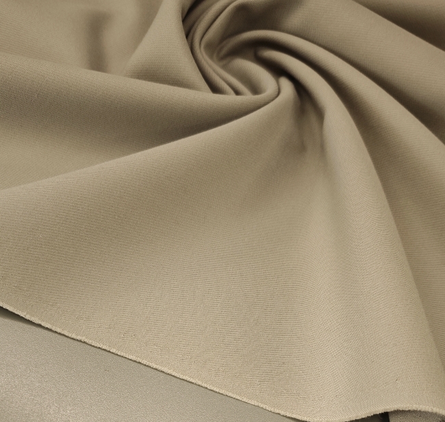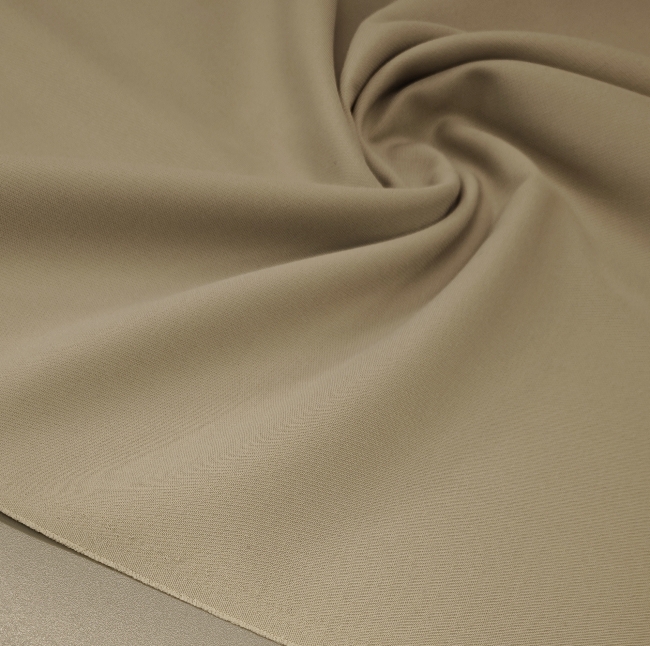 Neutralna bež tkanina s prirodnim izgledom i lijepim padom idealna je za šivanje sakoa, hlača, suknji ili laganih kaputa. Na dodir je ugodna, lagano čvrsta i uredno se ponaša pri krojenju i nošenju.