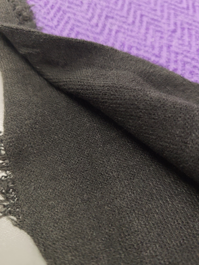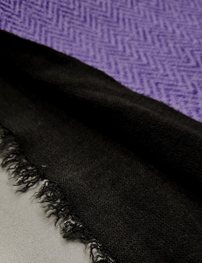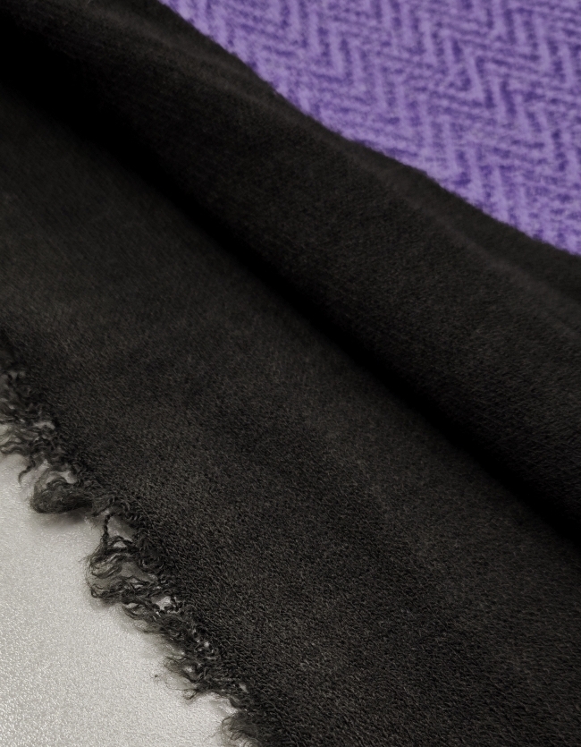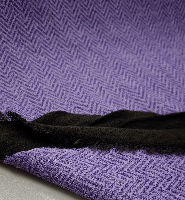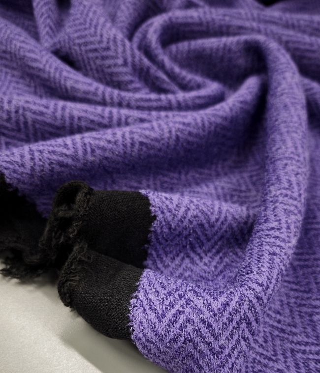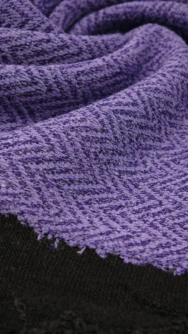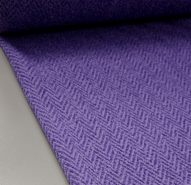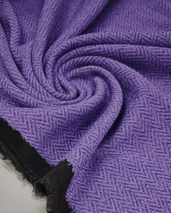 Ljubičasta elastična pletenina s uzorkom riblje kosti ističe se izraženom teksturom i modernim, elegantnim izgledom. Uzorak riblje kosti daje tkanini dubinu i jasan vizualni identitet, dok elastičnost osigurava udobnost i prilagodljivost pri nošenju. Materijal je mekan, ugodan na dodir i stabilan, što omogućuje uredan izgled gotovih proizvoda.