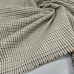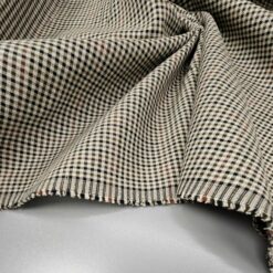Maslinasto zelena karirana tkanina (210 g/m²) idealna je za odjeću, izdržljiva i elegantna, s klasičnim uzorkom koji svakom komadu dodaje poseban dodir. Dostupna po cijeni od 19,90 € po kilogramu.