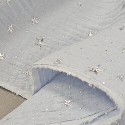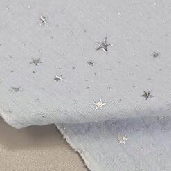 Tetra tkanina svijetloplave boje, dvostruka (120 g/m2), sa srebrnim printom “zvijezde” 1 m/9,50 €