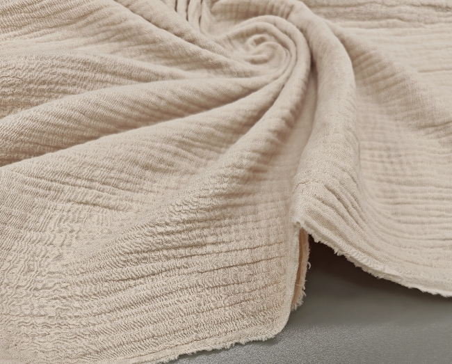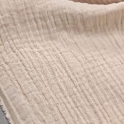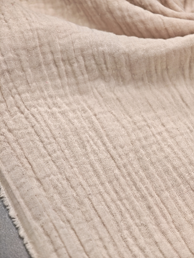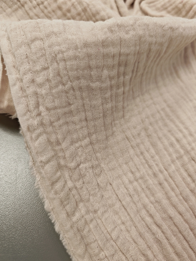 Mekana, prozračna i ugodna na koži. Dvoslojna tetra u prirodnoj bež nijansi odličan je izbor za dječju odjeću, ljetne majice, haljine, šalove, kombinezone i lagane dekice. Prirodna bež boja je mirna, lijepo se kombinira i prikladna je za sve generacije. Dvoslojna struktura daje materijalu veću punoću, a istovremeno ostaje lagana i udobna za nošenje. Jednostavan, provjeren izbor za svakodnevnu odjeću i modne dodatke.