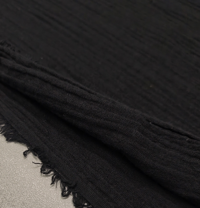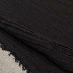 Dvoslojna crna tetra tkanina izrađena od 100 % pamuka. Mekana, prozračna i visoko upijajuća, ali istovremeno gušća i stabilnija od klasične jednoslojne tetre zbog svoje dvostruke strukture. Pogodna za pelene, uloške, lagane dekice, dječju posteljinu, kuhinjske krpe i ostale kućanske proizvode. Crna boja daje čist, moderan izgled i praktična je za svakodnevnu upotrebu. Lako se održava, periva na višim temperaturama, brzo se suši. Pouzdana pamučna tkanina za široku upotrebu u šivanju za djecu i dom.