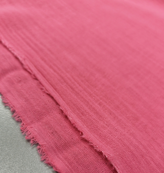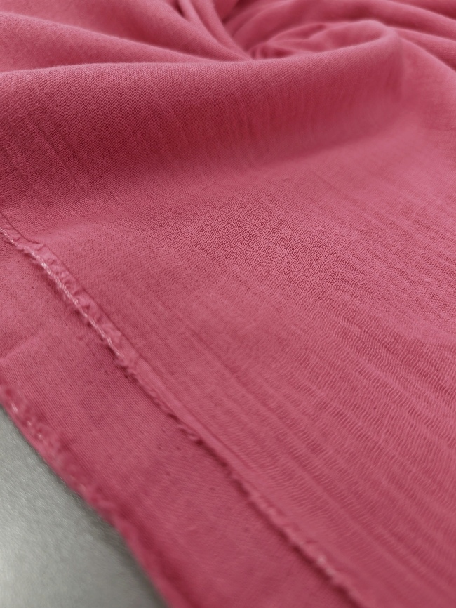 Mekana, dvoslojna tetra tkanina u ružičastoj boji. Prozračna, ugodna na dodir i neprozirna zbog dva sloja. Prirodan osjećaj i lagana struktura pripadaju svakodnevnim, udobnim i dječjim modelima. Upotreba: dječja odjeća, košulje, tunike, kratke hlače, ljetne haljine, pidžame, deke od muslina, šalovi, trake za kosu, lagane dekice i ljetni dodaci. Pogodno za proljeće-ljeto. Svojstva: dvoslojna struktura povećava mekoću i pokrivenost, održava prozračnost i ugodan osjećaj na koži. Ružičasta boja dodaje svjež, mladenački izgled.