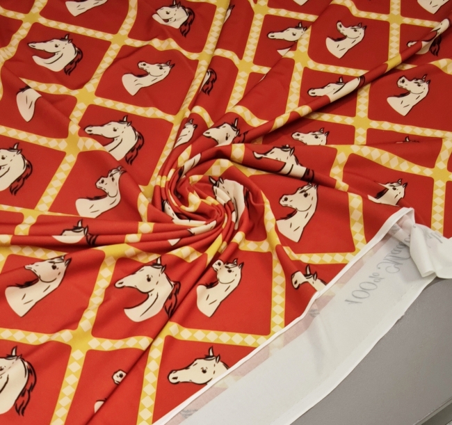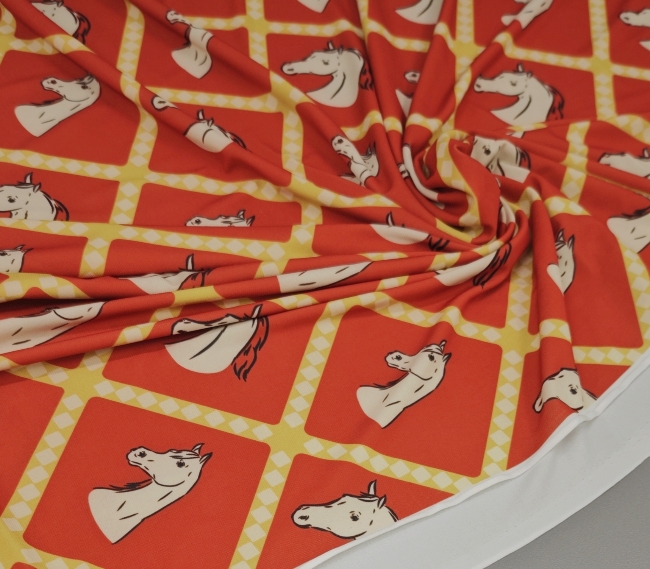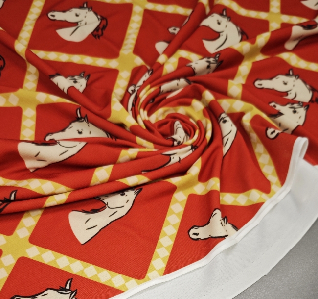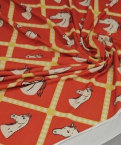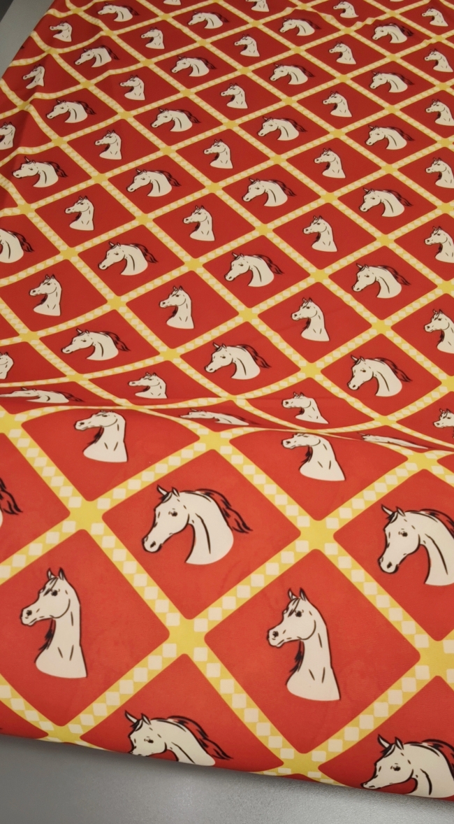 Ova elastična likra s preslatkim motivom konjića idealna je za udobnu odjeću, pletene setove, tajice, majice, kostime i kreativne projekte koji traže rastezljiv, mekan i trajan materijal.