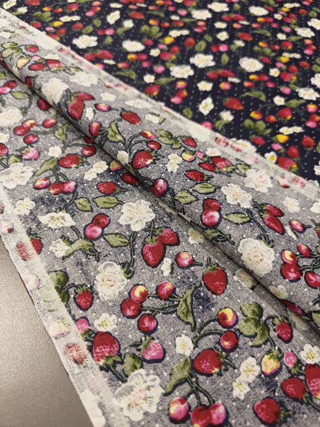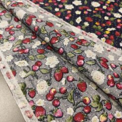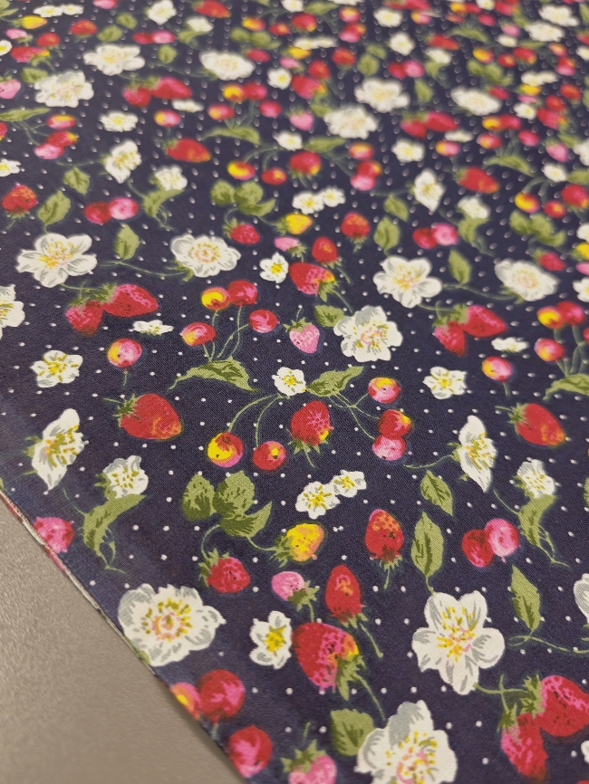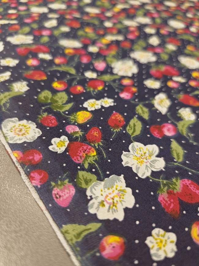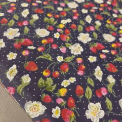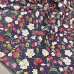 Pamučni popelin s jagodama – tamnoplavi cvjetni uzorak ZADNJI KOMAD 2,50 m / 16,25 €