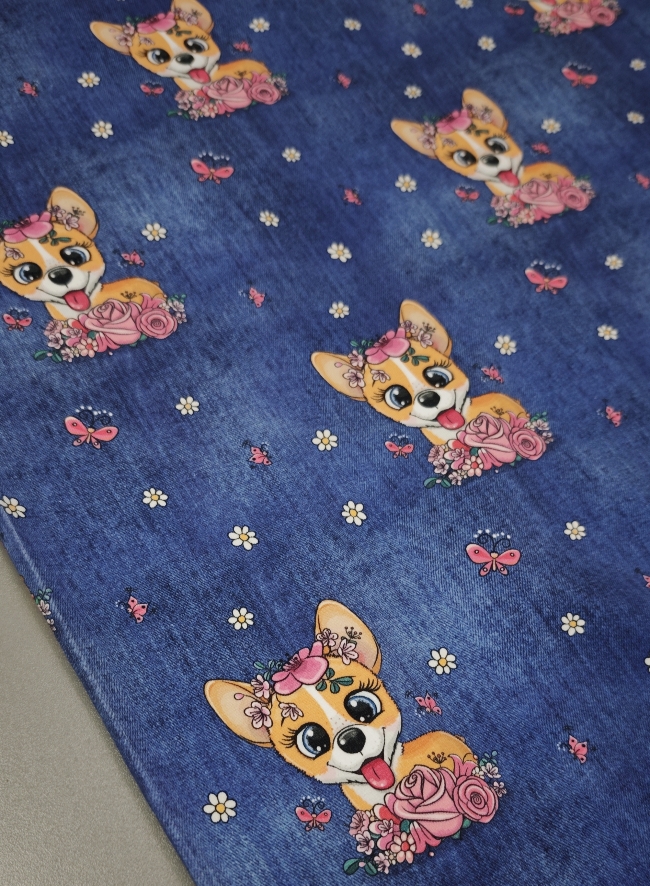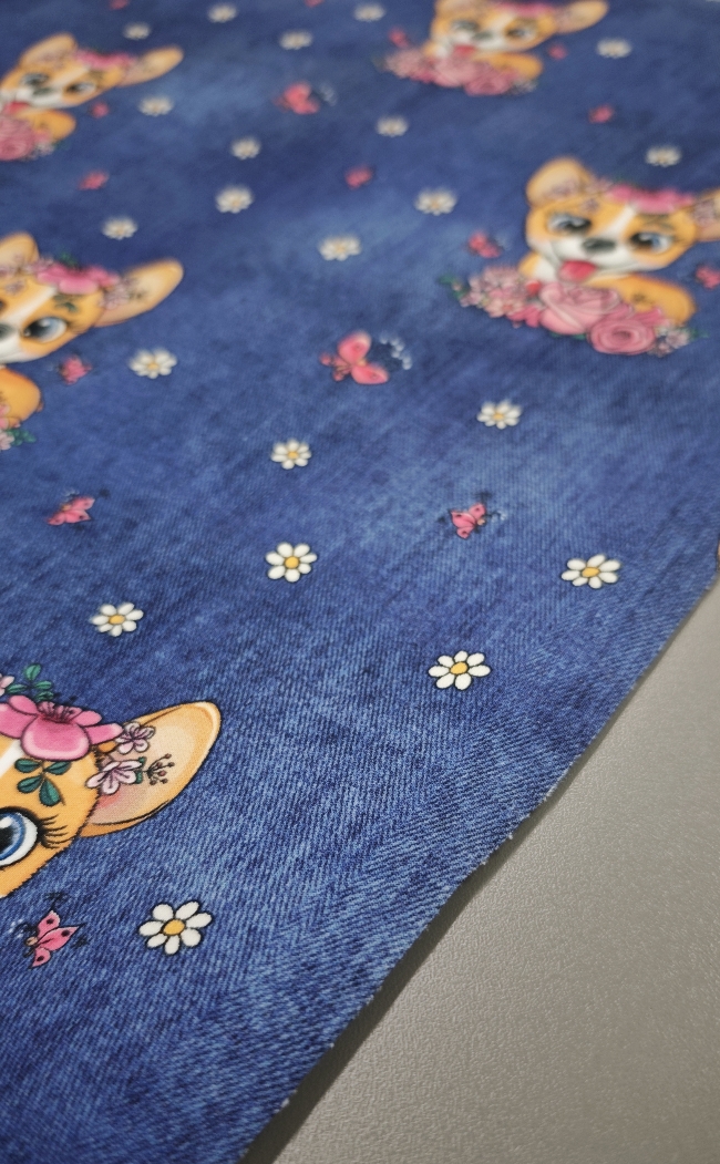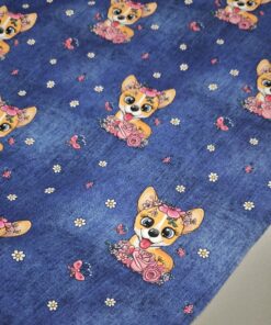 Ovaj pamučni dječji jersey u nježno plavoj boji sa simpatičnim psićima i sitnim cvjetićima savršen je izbor za mekanu, udobnu i prozračnu dječju odjeću. Materijal je ugodan na koži, elastičan i dovoljno stabilan za svakodnevno nošenje.